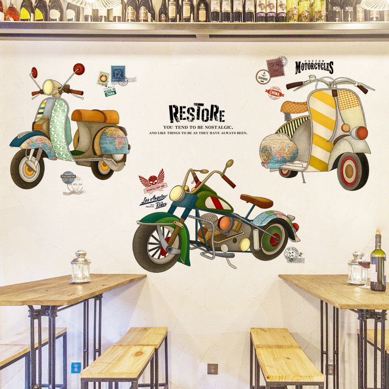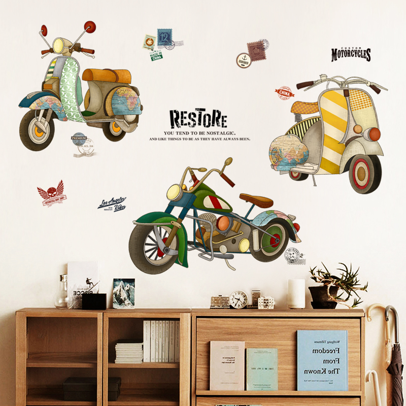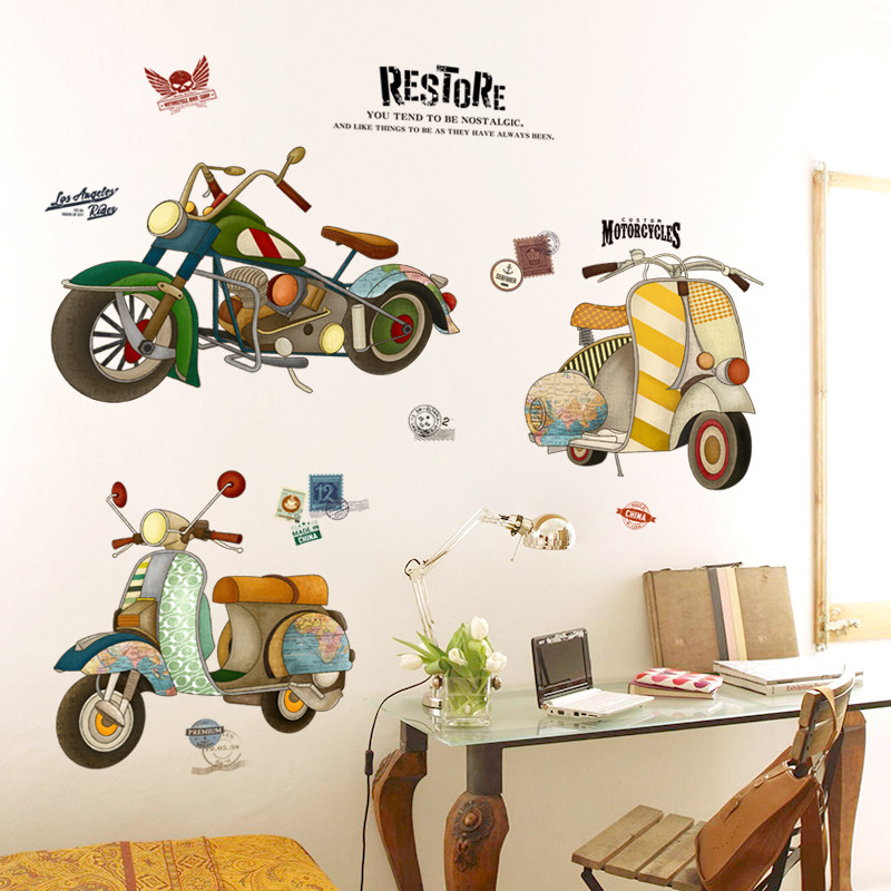 其乐文艺复古摩托机车书房贴纸MM6533