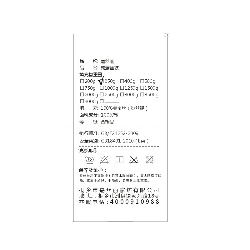嘉丝丽桑蚕丝夏凉被CSB2225