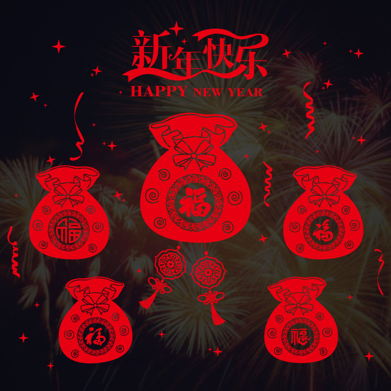 其乐春节除夕商场布置墙贴纸XH6207