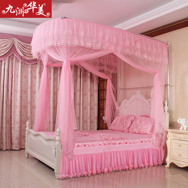 水星家纺不锈钢宫廷方顶三开门落地蚊帐