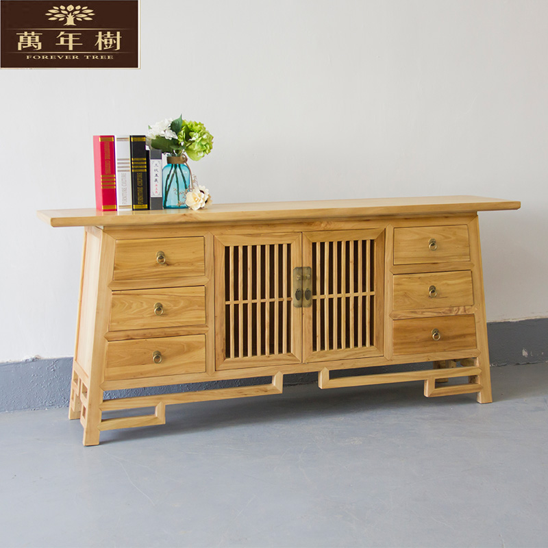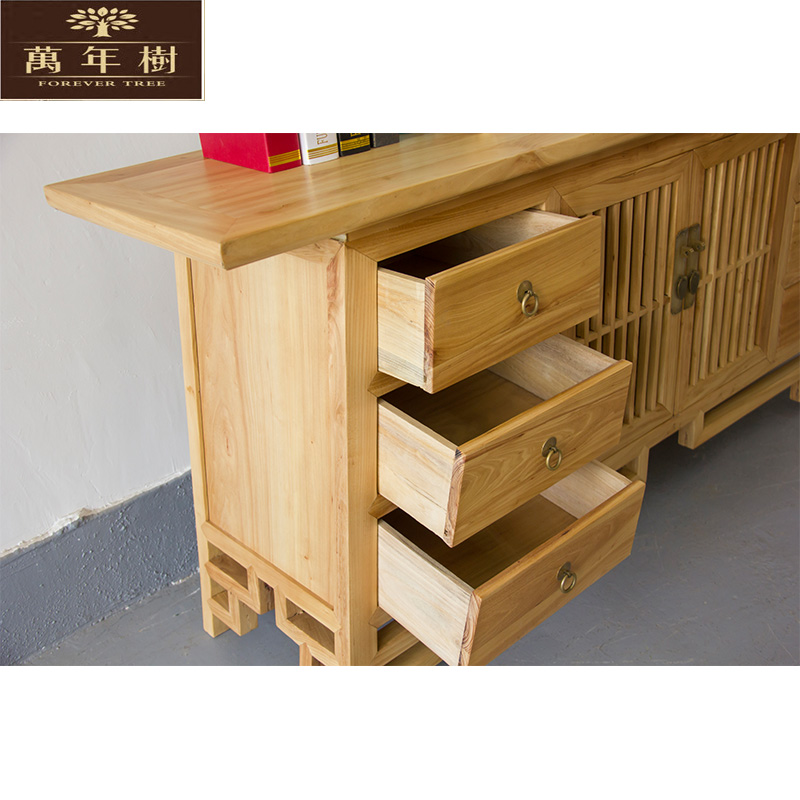 万年树老榆木免漆餐边柜