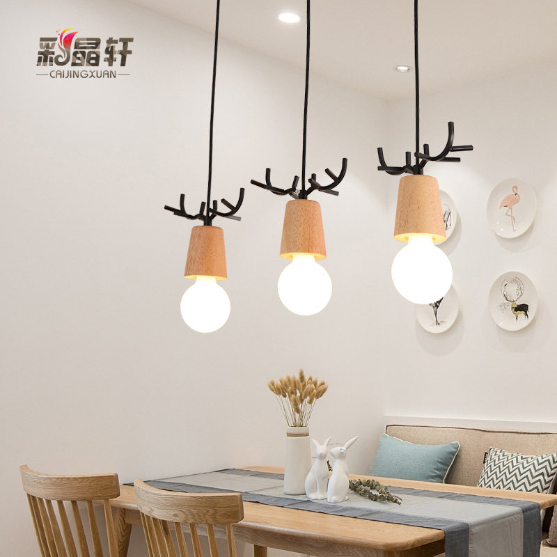彩晶轩北欧铁艺鹿头餐吊灯ST-10