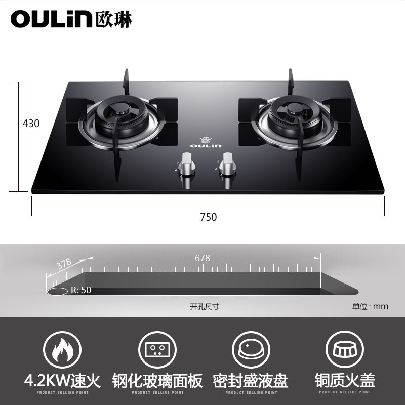 欧琳嵌入式燃气灶