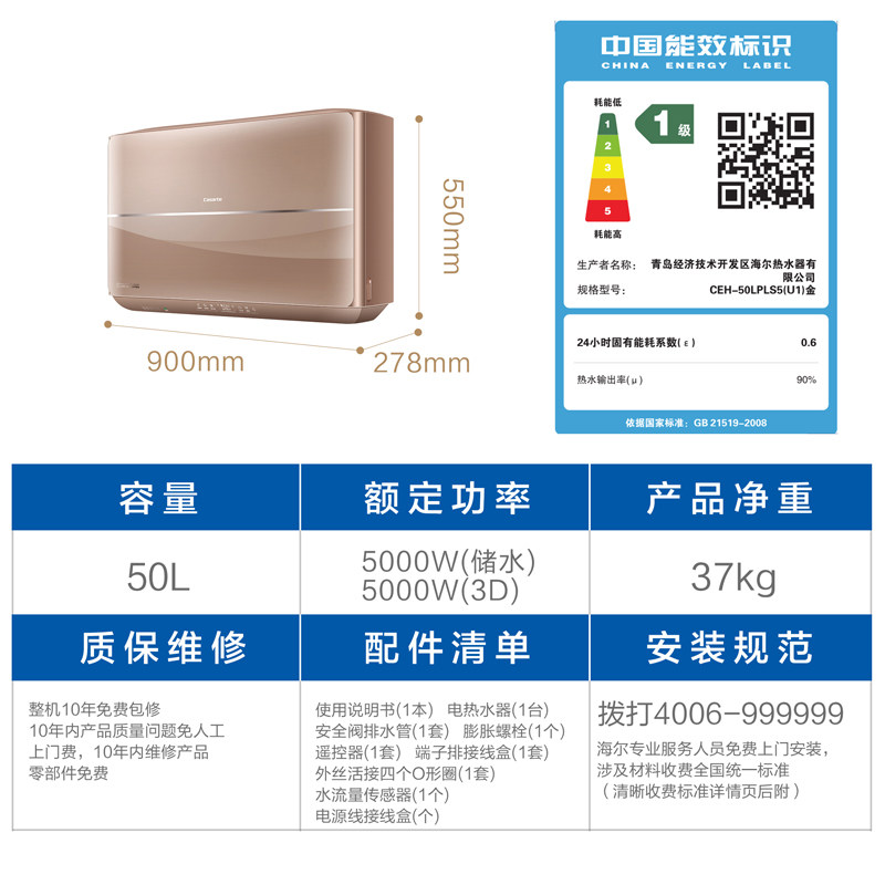 卡萨帝家用速热电热水器CEH-50LPLS5(U1)