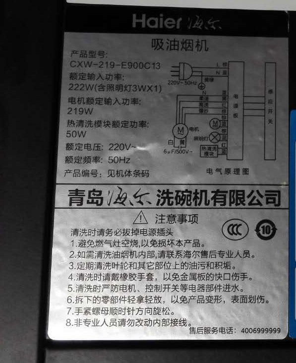 海尔吸油烟机CXW-219-E900C13