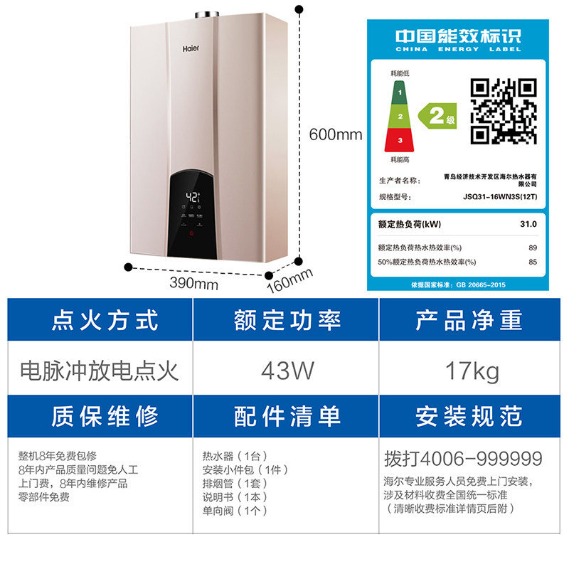 海尔燃气热水器 JSQ31-16WN3S(12T)