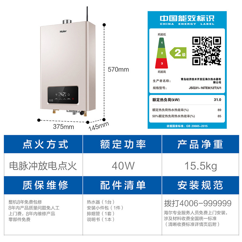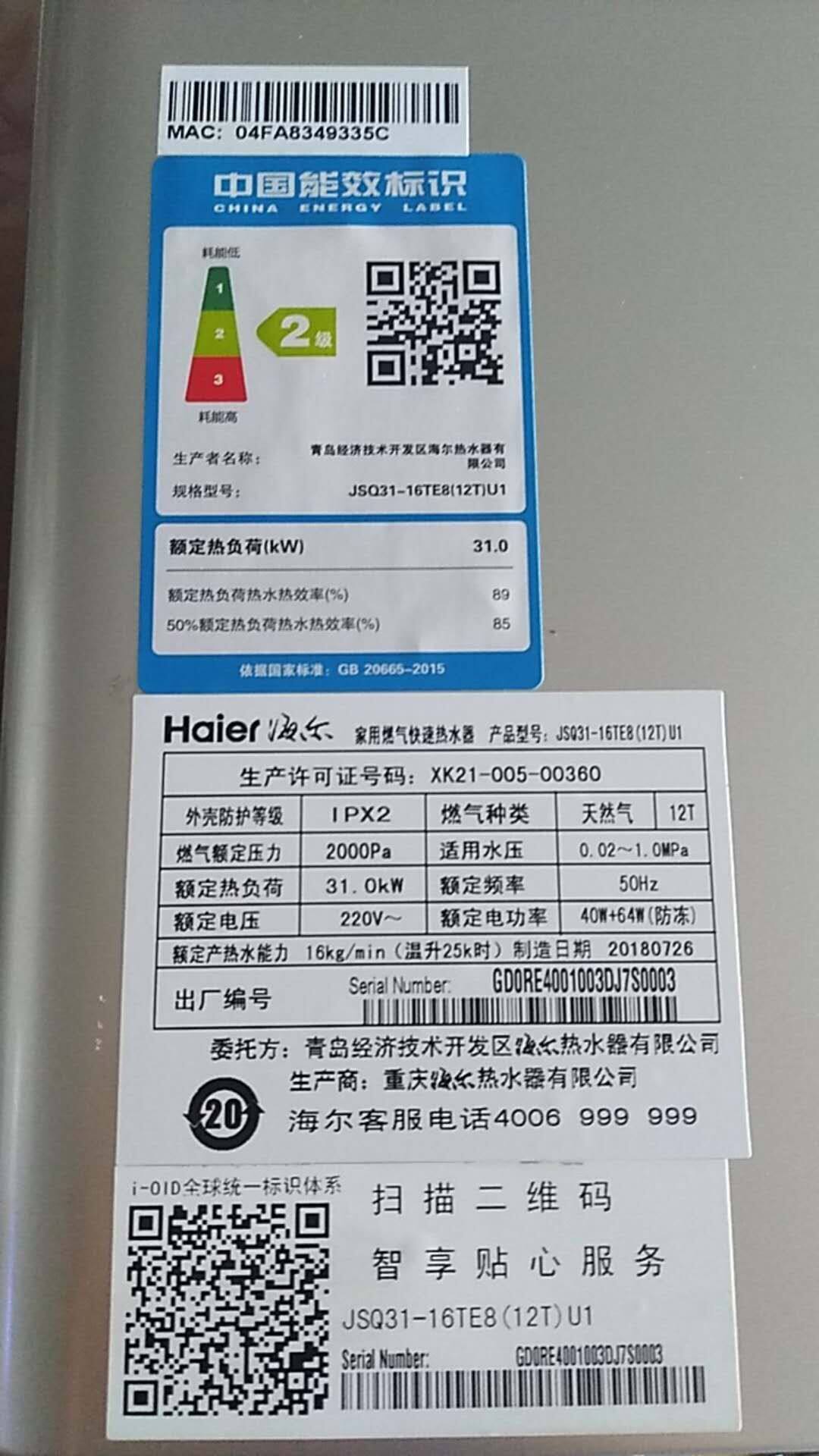 海尔燃气热水器JSQ31-16TE8(12T)U1