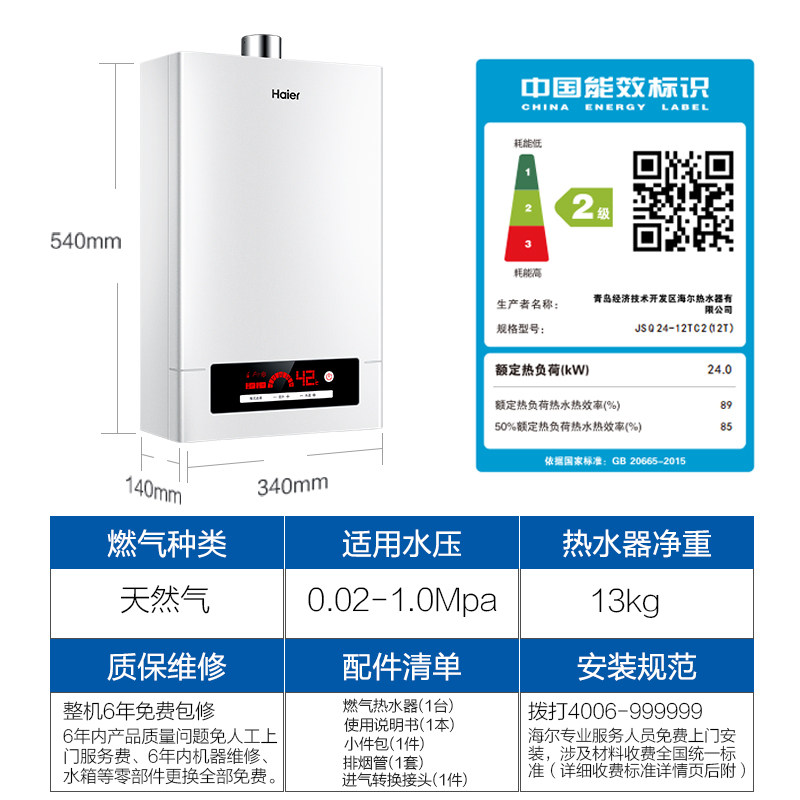 /海尔)燃气热水器家用 JSQ24-12TC2(12T)