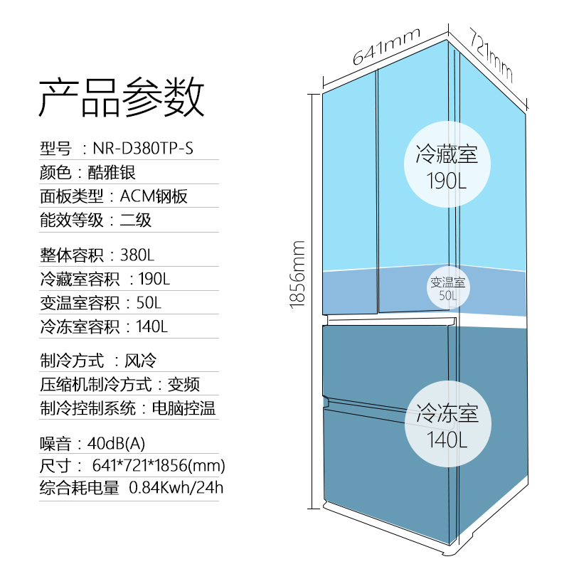 松下变频电冰箱NR-D380TP-S