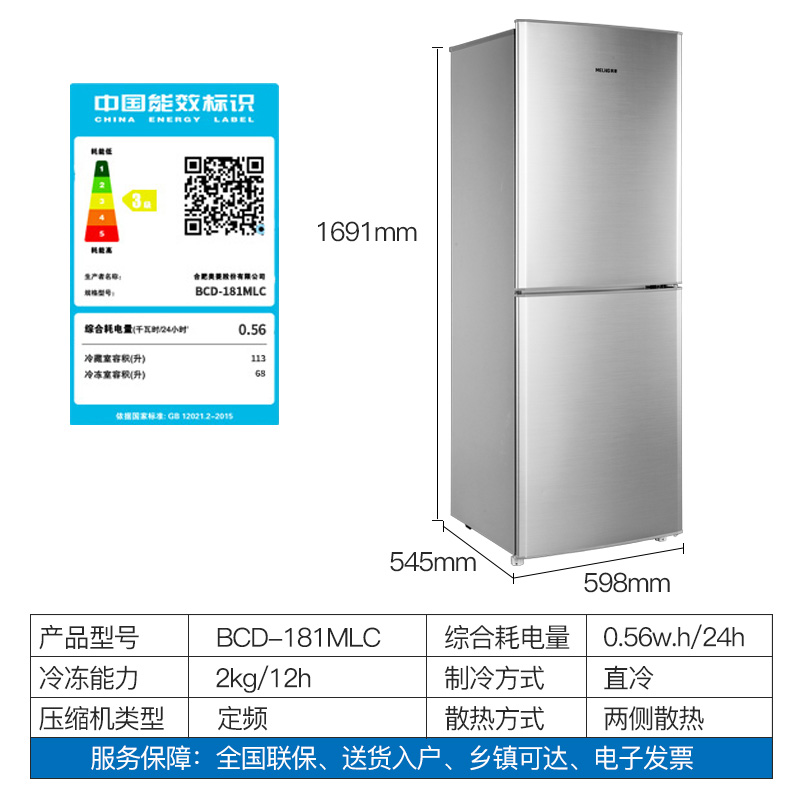 美菱双门式电冰箱bcd-181mlc