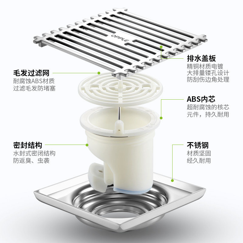 欧普照明不锈钢防臭地漏