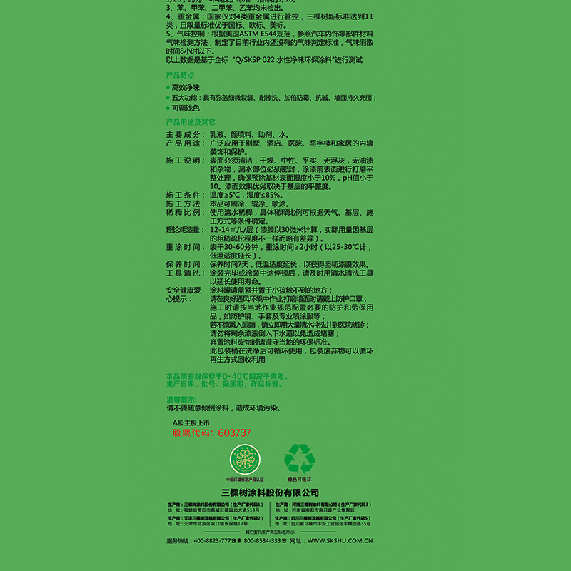 三棵树净味防霉墙面漆SSI600