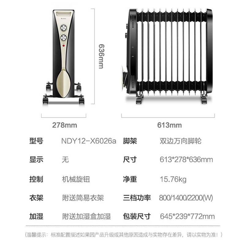 格力油汀取暖器 NDY12-X6026