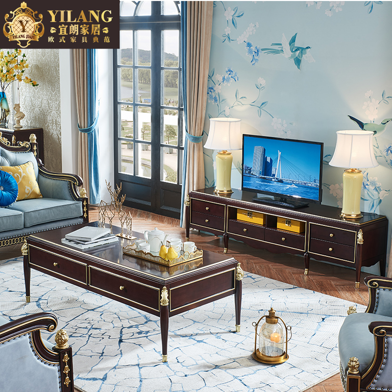 宜朗新美式全实木电视柜T8