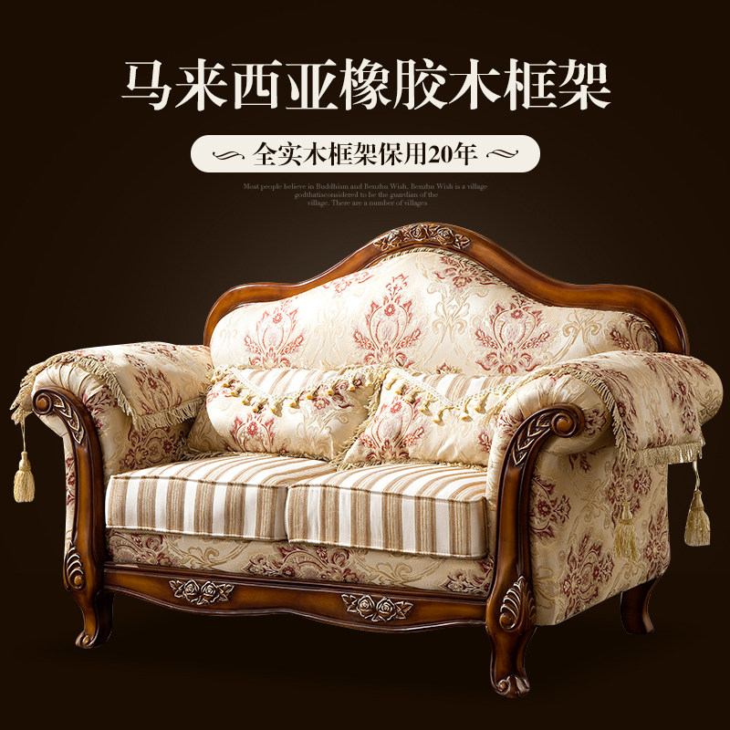 美克美家美式现代简约双人实木沙发