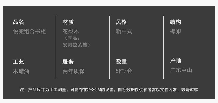 红古轩悦棠雅风 悦棠组合书柜(5件套)