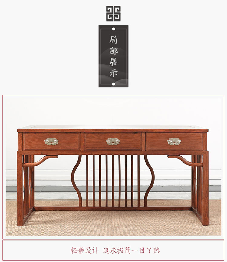 轻奢设计追求极简一目了然;栅格木纹清晰自然,排列张弛有度;人体工程学设计,舒适耐用;采用天然木蜡油,环保健康;海棠花白铜拉手精美耐用