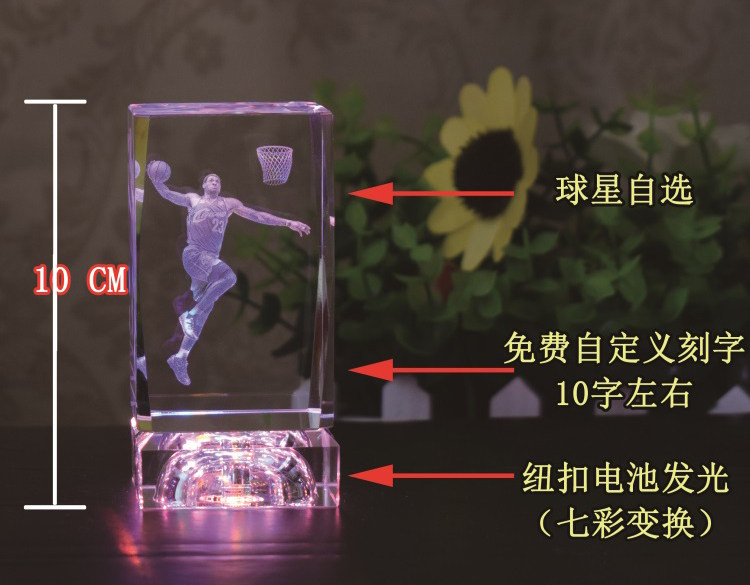 NBA水晶篮球纪念用品摆件,欧文库里科比詹姆斯玩偶手办,diy生日礼物。做工质量很好,很有创意。