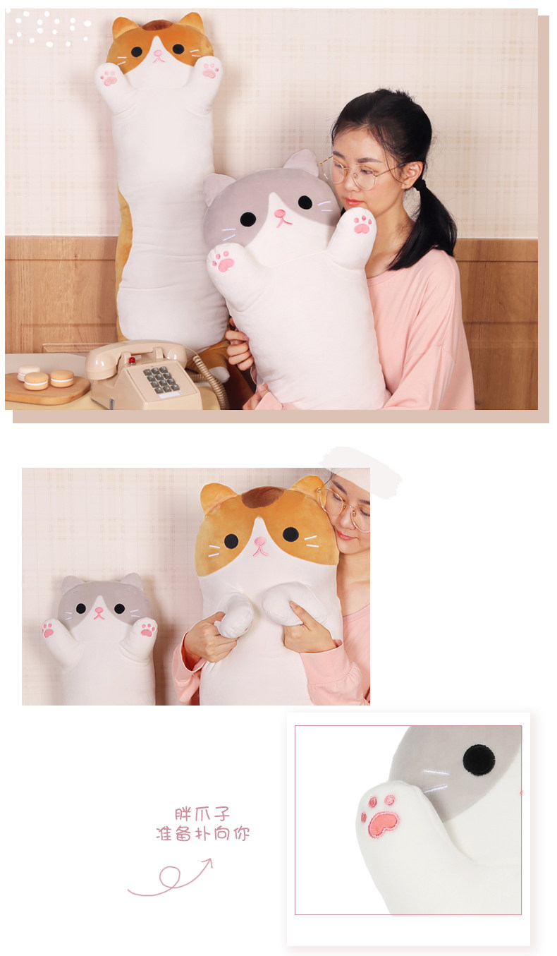 猫咪玩偶抱枕女生睡觉毛绒玩具布抱睡长条娃娃 六一儿童节礼物