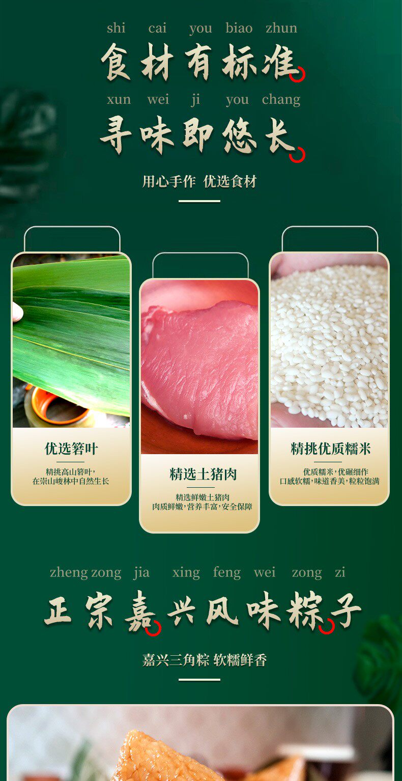 嘉兴粽子味道就是不一样,口感非常好,重量足,外包装精美,喜欢的亲赶紧下手哦! 粽子软糯,咸鲜适口,每个粽子里面都是蛋黄和瘦肉以及肥肉的组合,很是莹润,非常滋润美味,蛋黄和肉的份量,每只粽子都一致,这是品控的保证,这款粽子值得推荐哦。