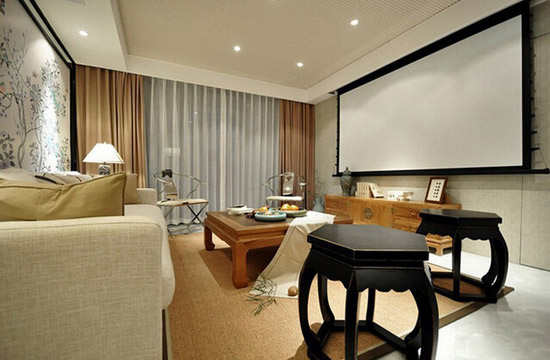 新中式的美好在于将复古元素简约化,配以现代化的空间色彩和布局,呈现出清雅含蓄、端庄丰华的东方格调。这个新中式的家把这份美好演绎到淋漓尽致。进门可见一扇山水镂空屏风,唯美空灵的花鸟画作给人误入仙境的错觉。同样唯美的画作出现在客厅的墙上,让家充满诗意。家具以现代宜家和简约中式为主,既温馨柔美又不失端庄大气,称得上“雅居”二字。