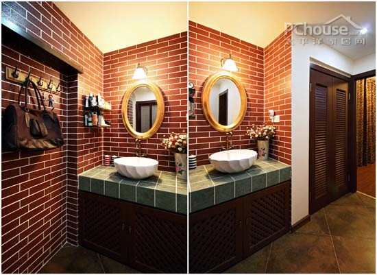 编辑点评:过道的红色墙面是客厅的延续,空间感觉活泼、热烈,加上周围色调的选择和设计元素巧妙的搭配,避免了大面积色块带来的视觉过度刺激,给人一种青春活力之感。艳而不俗,媚而不妖。香艳与精致并重,又不乏清雅、灵动,传递出淡然、稳重之感!