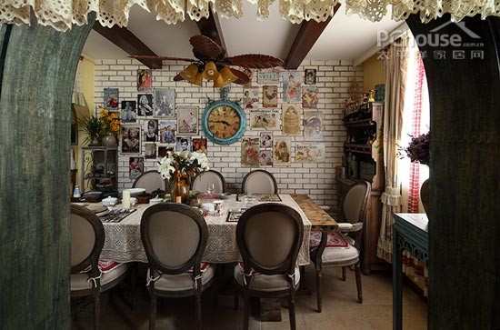 设计核心:以裸墙砖、泛旧的木质家具与布艺为主,不加以过分雕琢的原材料,带出乡村风格的朴素本质。大胆的中外乡村元素混搭,娓娓道出女主人对乡村风格狂热的追求。