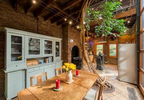 编辑点评:往餐厅一看,一株绿树矗立在正中央,真是莫大的惊喜。这样透着阳光的一处地方,生长着如此有活力的一棵树,会是怎样的一种享受呢?不禁引人遐想!