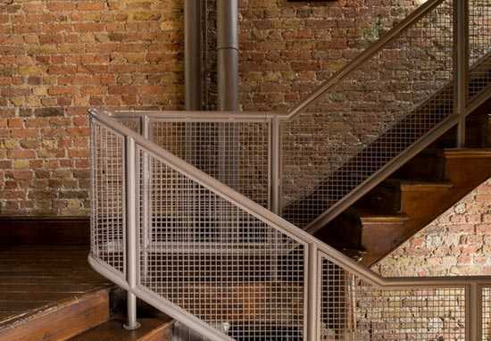 编辑点评:灰色金属的扶手设计,在颜色上比较贴近房子的主颜色,而网格状的设计则使视野更加透明,当然,这种设计需要小心不要把手等塞进去,以防危险。