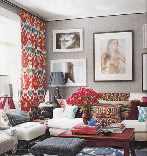 小编的话:在不大的空间里铺上花色地毯,花灰色纹理的的墙面上挂着五六幅不算小的人物画像,客厅的格调有种淡淡的欧美风,一旁的大窗户使客厅的采光极好,总感觉家里来客人的时候坐在这里聊聊天会有种别样的温馨感。
