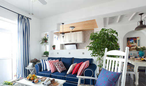 小编的话:从家具到墙面都是纯白的客厅空间,能够使空间在视觉上得到扩容的效果。可以看出此案例中,开放式的厨房旁边就是客厅,所以采用了以大块面瓷砖铺设的地面,使空间整洁感会有所提升。在这样的空间里放上一张舒适的沙发和椅子就能营造出温馨客厅的感觉了。加上一旁明亮的阳台能够为客厅带来足够的采光,亮堂的客厅空间总是讨人爱的。