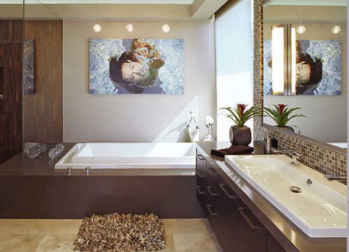 好的浴室通常有这两种方式:泡温泉般的放松,或精心布置使其具有功能性。好的浴室,能将空间风格和功能很好的融合在一起,整个过程看起来是那么的惊人。它如何做到?运用主墙、豪华的浴缸、帅气的固定设施,或是三者皆有。