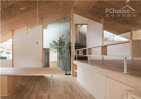 编辑点评:实木打造横梁、顶棚、地板和主题墙,舒适的自然气息触手可及。加上大树的栽种,为居室注入活力之余,更是传递出返璞归真的自然美。