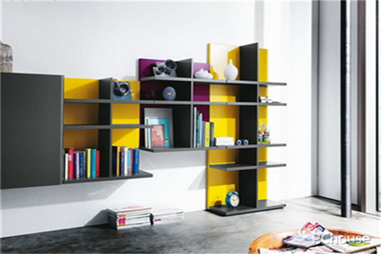 大面积色块的使用让房间整体配色显得颇具专业水准。除去窗帘、沙发这些体量大的物件,家具的背板也能成为色块出现的地方,撞色的运用更是让原本看起来中规中矩的搁架显得活泼而且充满视觉冲击力。