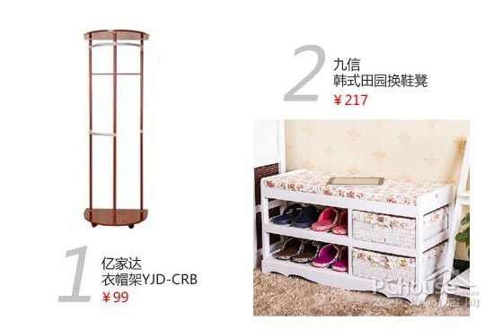 1、亿家达衣帽架YJD-CRB:人造板材质,框架结构,钢管支架,亚光烤漆单贴面,参考价格99元。【查看产品详情】