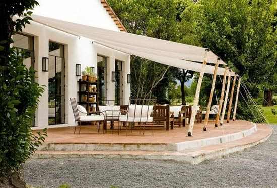 编辑点评:露天的休闲区,难免会遇到下雨或者烈日高照的时候,这时遮阳篷就起了很好的作用。既可以遮阳,又能够挡雨,关键是它的设计美观且稳当,利用斜柱与拉索固定在地面,就不用担心大风的吹打了。