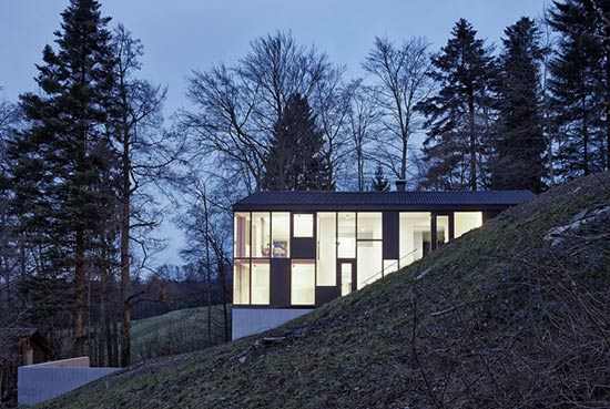 编辑点评:屋子建造在半山腰的树林之间,景色优美,视野开阔,在碧树绿草的映衬下,充满了欧洲田园生活的味道。