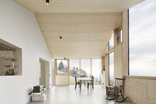 【太平洋家居网 设计频道】Hohlen住宅是奥地利建筑师Jochen Specht新作。这栋房屋始于1961年,位于奥地利多恩比恩一座小山上,周围是树林,后来这栋房屋经历了火灾,留下了原有的石材结构。Jochen Specht改扩建时,将除结构以外的所有无用之物都去掉,在原有结构外面建了一个宽大通透的木材框架,让老屋重新焕发出了青春。