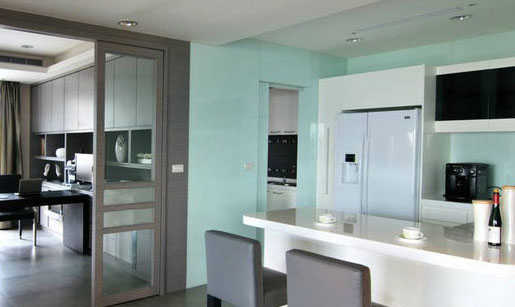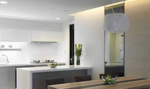 吧台将书房和厨房二者隔开来,但是也让这两者存在着良好的互动性。同时也将生活的活动区域在无形中进行了一次放大。