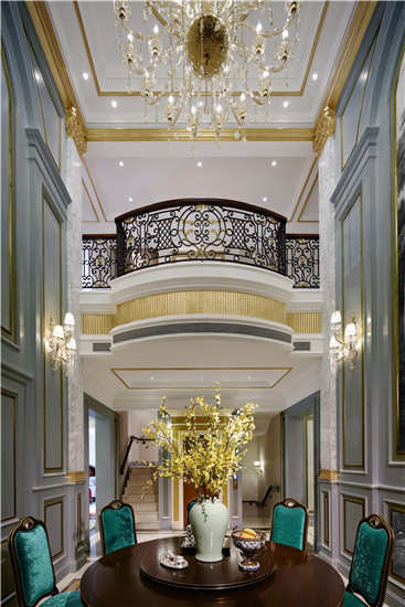 编辑点评:由于卧室装饰华丽,为了平衡空间的承受力,设计师并没有对吊顶做过多的装饰,简单的直线和四角的小花朵呈现出简约精致的美感,不抢眼也不显单调。
