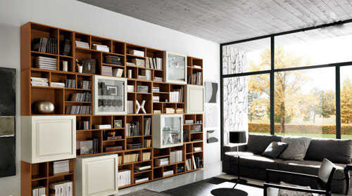 客厅墙体收纳--正面墙的书柜虽然可以收集很多东西,但是有着致命的弱点,如果你的书柜没有任何装饰格子的话,那整面墙看起来会很呆板。