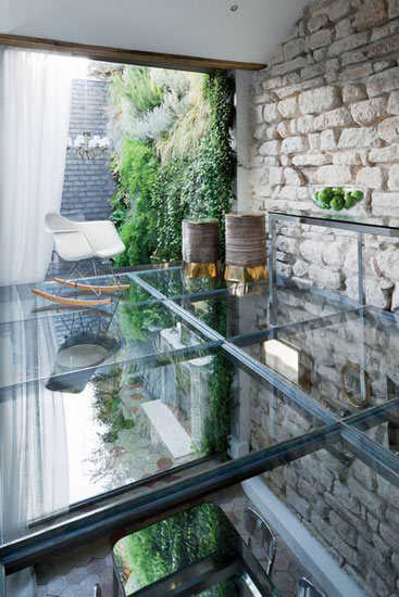 编辑点评:在餐厅的天花板设计上,设计师采用了完全透明的玻璃架,架设成为一个露台,让用餐区域有在室外空间的即视感,视线完全没有阻碍,走在上面一定感受很特别。