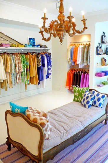 Tip1:专对于独立的衣帽间而言,设计时,要合理安排灯光、色调等元素,使之既融入室内整体风格,又保持自己独特的情调。在灯光设计方面,最好设置接近自然光的光源,使衣服的颜色最接近正常,方便主人选择。