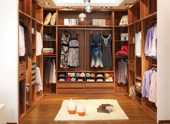Tip1:U形布局的衣帽间的内部形式是根据房间的空间格局,正方形格局则多采用U形排布,这样还可以充分利用转角空间。