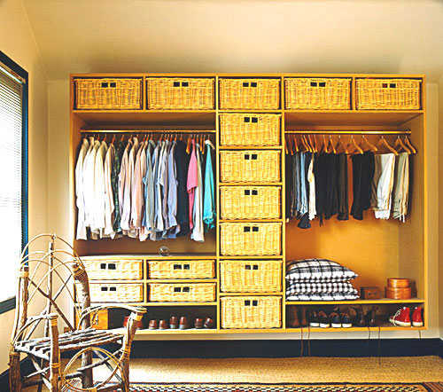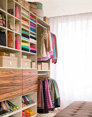 小编的话:整体式衣帽间、大衣柜等,其间内部空间大,容纳丰富,略高于人身高的部分便是换季收纳空间点,将换季下来的衣物收纳于顶端。加上些储物盒,则可将换季收纳更发挥到极致。