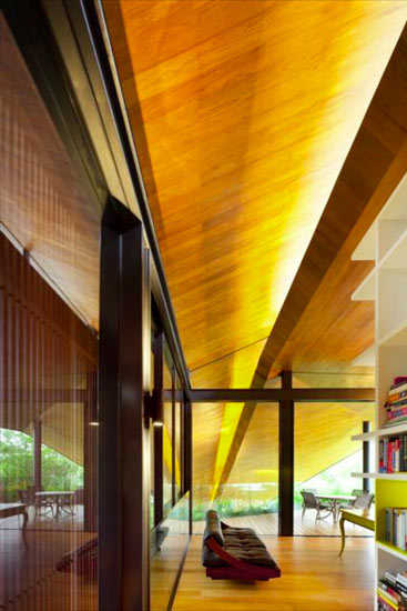 小编点评:宽敞的室内环境,简约的家具摆设,精致的落地玻璃,制造了宽阔的视觉效果。这种设计巧妙地取景周围的绿色景观,让屋檐紧贴树枝,让人在每天早上都可以沐浴在树木的清新空气中品味香浓的咖啡。即使身处的居室里面,也会令人感到这只是外部自然世界渗透到里面的结果。