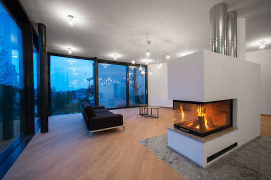 小编点评:土地的倾斜情节让该设计拥有两层地下和两个地上的空间,创造了别致的家庭环境。充足明亮的光线,简约的线条和布局,精致的壁炉隔断,将大自然的美妙旋律融入至生活。在如此优美的环境下,不得不让人感叹这个建筑的用心之处。