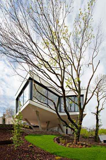小编点评:由于房子位于一个陡坡上,为了保护原本的土地和树木,Sebolichy团队就设计了不规则的水泥支架,把房子架空在平地上。并以树木作为天然的装饰物,让先天的环境与后台的建筑浑然天成,最后成为一个整体结构,仿佛所有东西天生都应该在这里一样。