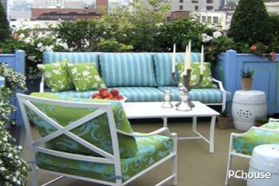 搭配蓝白相间的条纹布艺沙发,更给人带来无限的清凉感受,闲暇的午后,不用出门,在这里轻松的度过。