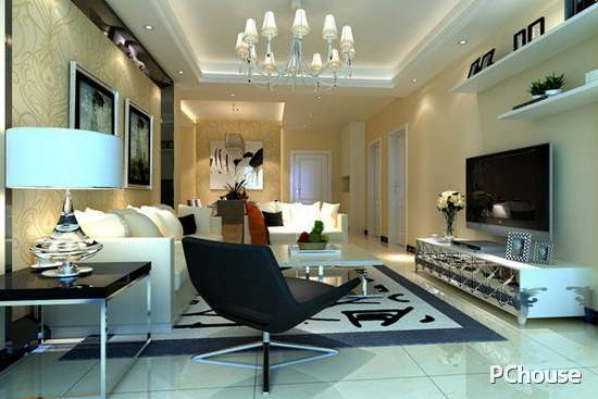 计师客厅大面运用米黄色墙纸,来体现空间的舒适感。电视背景墙独特的纹路设计,让整个空间给人一种自然的感觉。